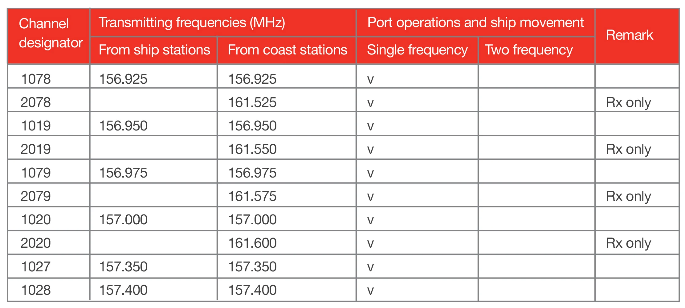 4-digit channel list for radiotelephone in the Appendix 18 of the Radio Regulations: