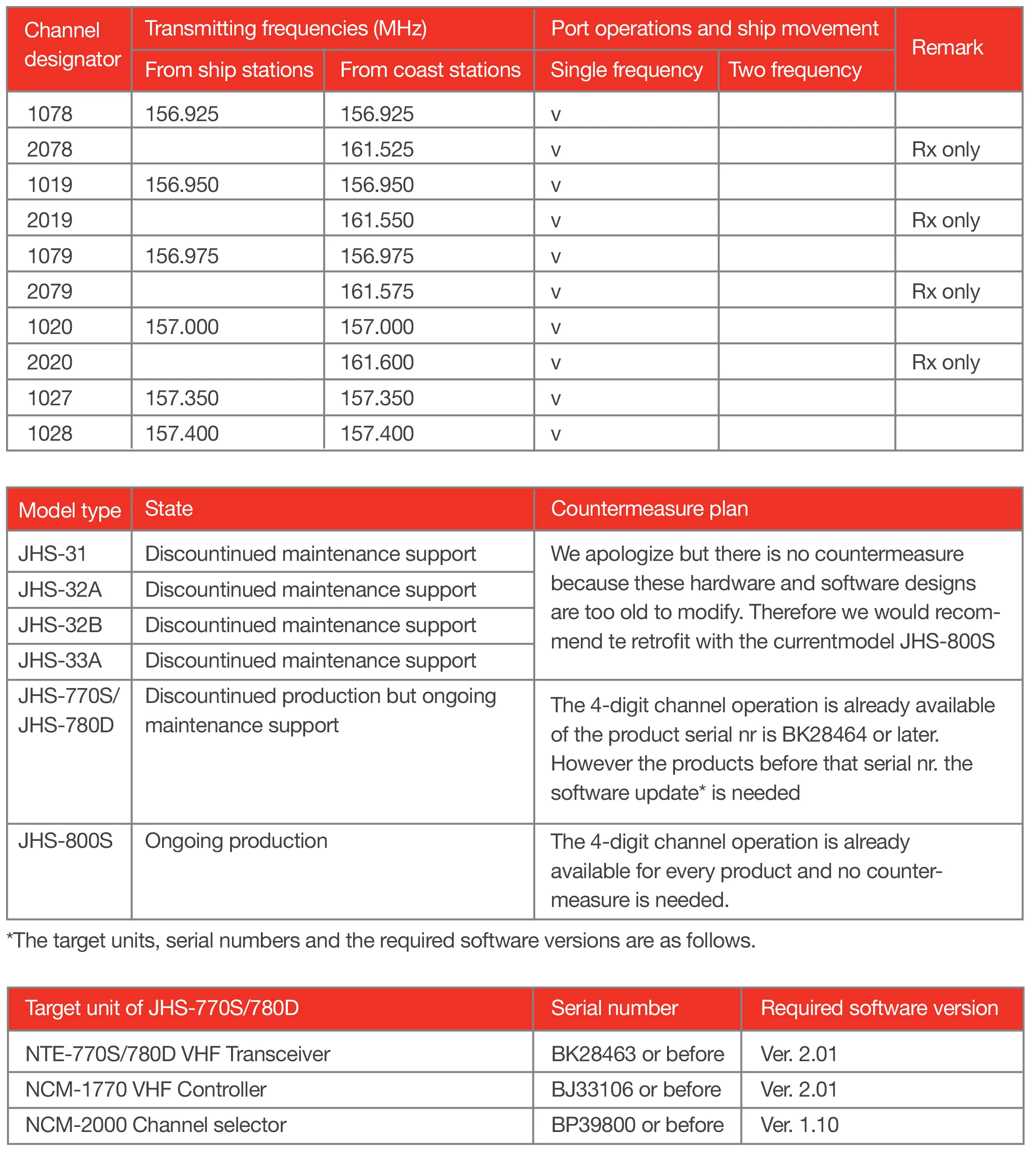 Take note that the JHS-32A/B and older VHFs will not be supported, the JHS-770S/780D will be supported (subject to software version), the JHS-800S is already complying with the appendix 18.