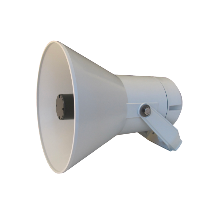20W plastic IP67 marine grade weatherproof horn speaker. Manufactured for extreme weather conditions and thus very suitable for outdoor use.