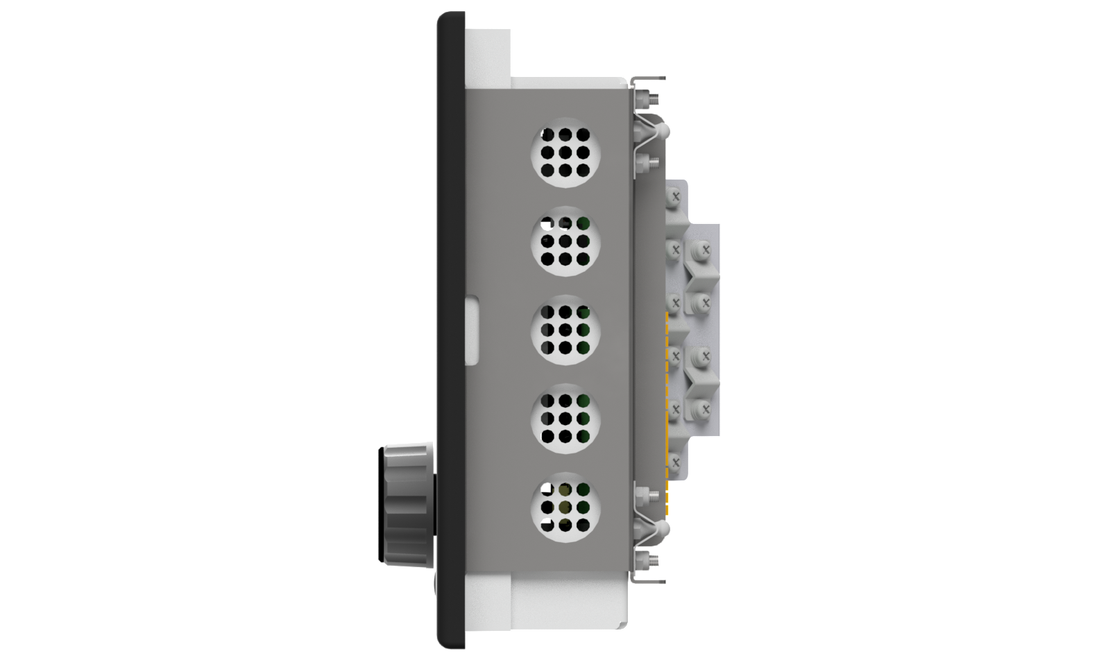 Die Deichsel werden zum Lenken und Schalter zum Auswählen der Lenkmodi benötigt. Als zusätzliche Sicherheitsfunktion leuchtet die Steuerpinne auf. Alle Deichsel und Schalter verfügen über Dimmer- und Stummschalttasten. Die Module haben einen Aluminiumsockel, der mit einer dedizierten Leiterplatte und einer spritzwassergeschützten Folienbeschichtung auf der Vorderseite ausgestattet ist. Die Module sind über CAN-Bus verbunden, um mit der Hauptsteuereinheit zu kommunizieren.