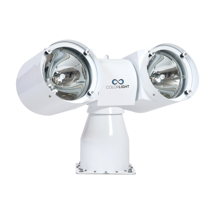 The product family CL25 is a medium size powerful searchlight that is based on HMI light technology. The dual head can be configured with dual white HMI, a combination white and UV or with dual UV. Pls find more information in the navigation to the right. In combination with the special designed parabolic reflector this searchlight gives an extraordinary light performance. The high color temperature in combination with the high color spectra (CRI) gives an impression of clear daylight with good contrasts of objects It also has high color rendering which is highly appreciated among mariners all over the world.
