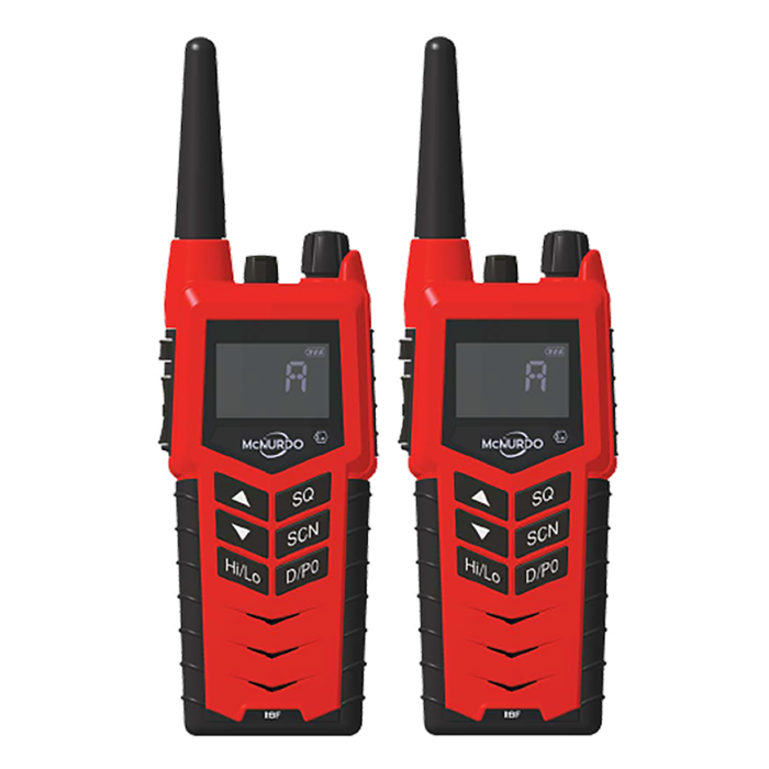The rugged McMurdo SmartFind R8F (set) UHF Fire Fighter Radio is an intrinsically safe two-way radio that meets new SOLAS II-2 mandated regulations for improved fire safety at sea. It has everything an emergency team needs in a radio, from enhanced grip and large tactile buttons for easy and fast operation in an emergency situation, to a powerful in-built loud speaker and Ultra High Frequency (UHF) for optimised indoor use. Bright red and for emergency use only, SmartFind R8F is a reliable and hardwearing radio that will support firefighters at sea during potentially lifethreatening situations. It is imperative that emergency teams can rely on the very best equipment and this is exactly what they’ll get with the McMurdo SmartFind R8F. A fire won’t wait, you shouldn’t either. Ensure the safety of your crew and vessel with McMurdo, the Most Trusted Name in Emergency Readiness and Response.